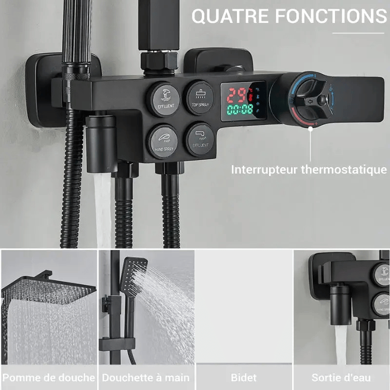 Colonne de douche noire avec écran LCD et mitigeur thermostatique