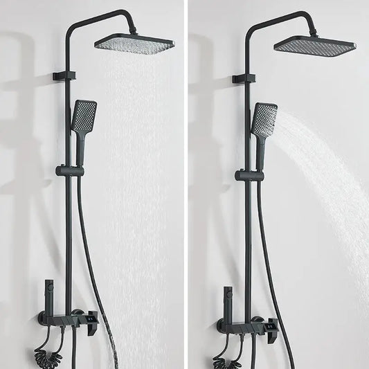 - Douchette à main : montée sur support coulissant pour un usage flexible.