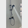 Une colonne de douche pour baignoire avec commande rotative, tête ronde orientable et bec cascade