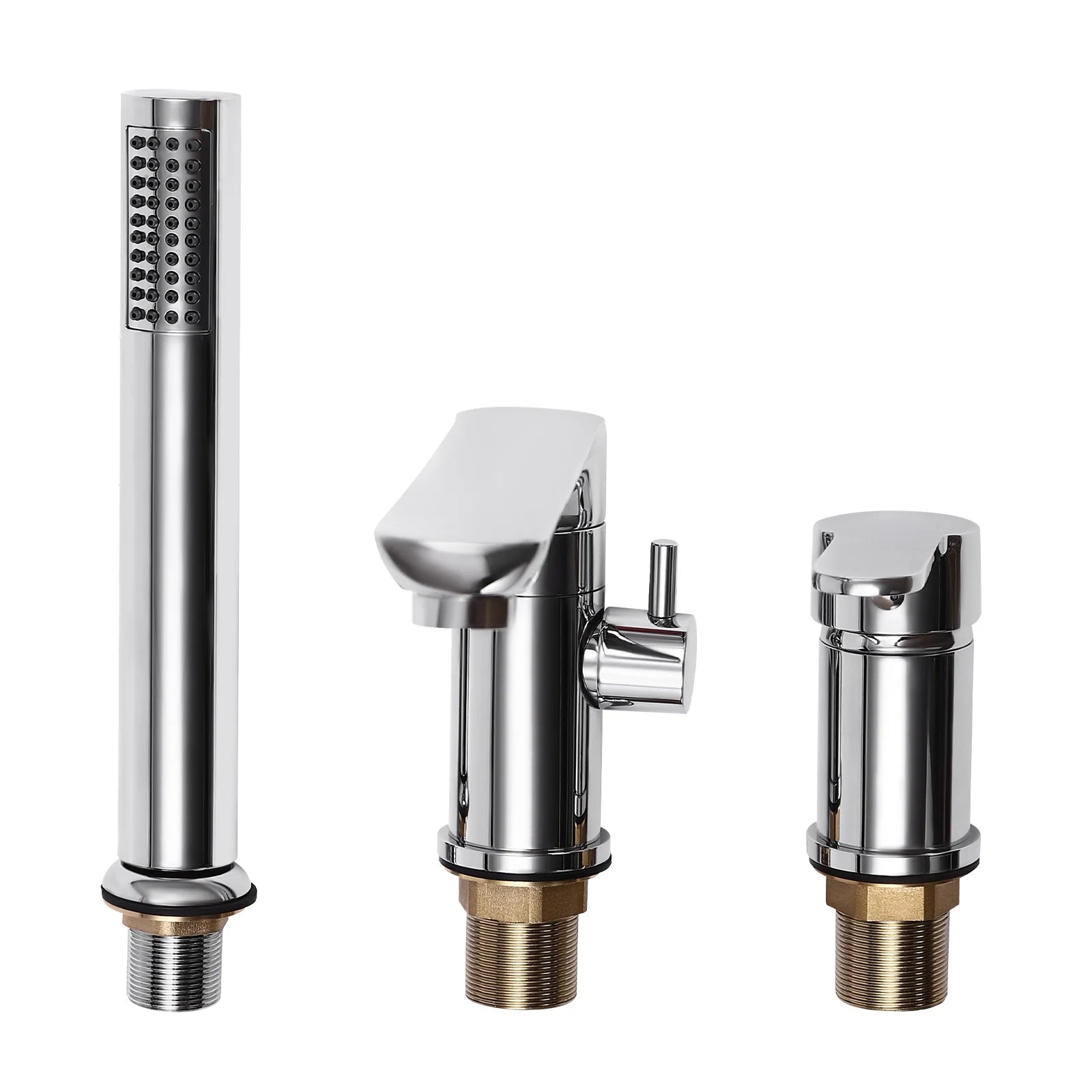 Le mitigeur baignoire 3 trous est conçu pour une installation sur rebord de baignoire. L’ensemble comprend un bec de baignoire, une douchette à main et une poignée de commande séparée. Le corps du mitigeur est fabriqué en cuivre avec une finition obtenue par polissage et galvanoplastie. Deux sorties d’eau sont prévues : le bec de baignoire et la douchette.
