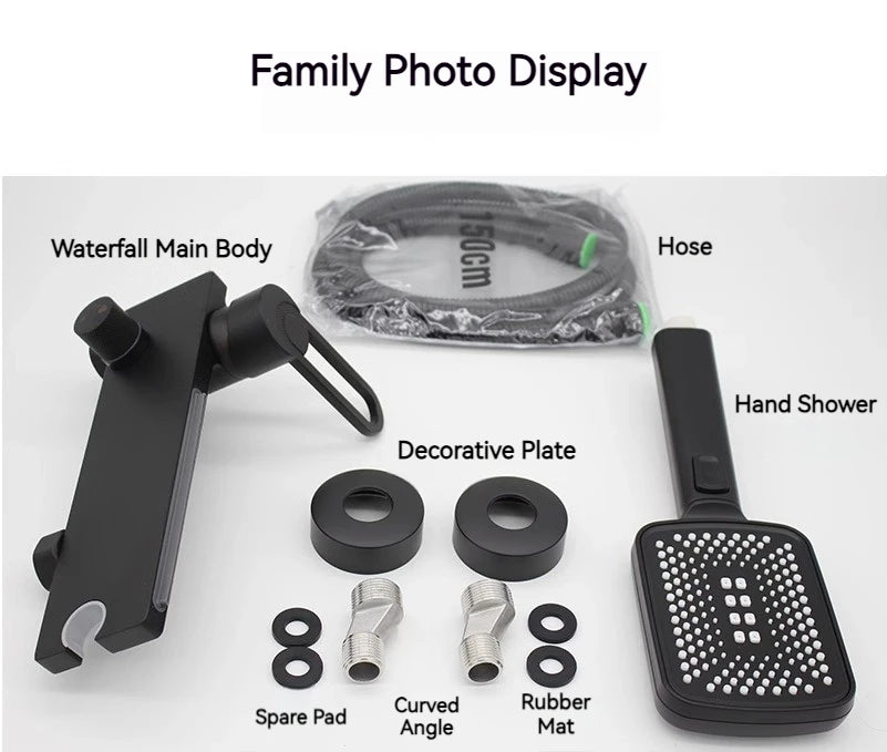 Le mitigeur douche avec tablette se présente sous la forme d’un ensemble mural apparent intégrant un corps horizontal, une tablette supérieure et une douchette à main reliée par un flexible. La tablette est positionnée au-dessus du corps du mitigeur et permet de poser des accessoires à portée de main. Plusieurs finitions sont proposées : or, noir, gris, chrome, or brossé et blanc.