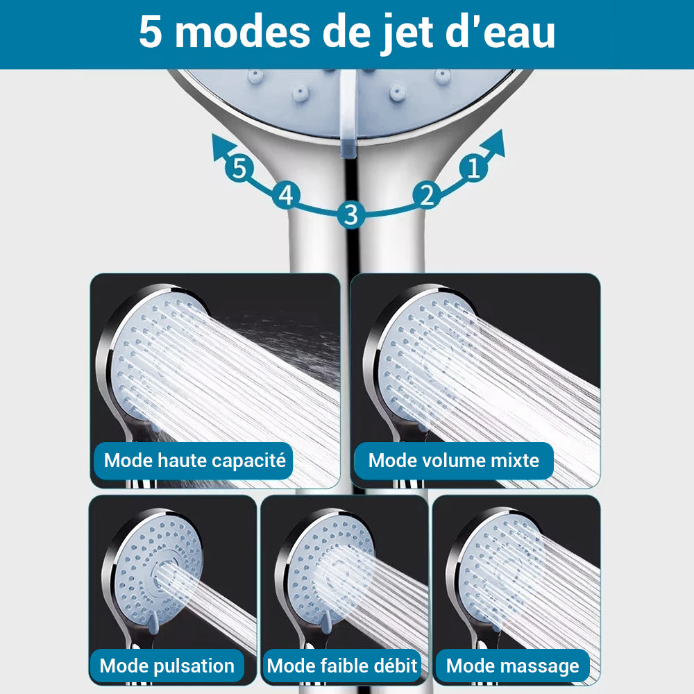 Un pommeau de douche avec perles buse et sélection de plusieurs modes de jet