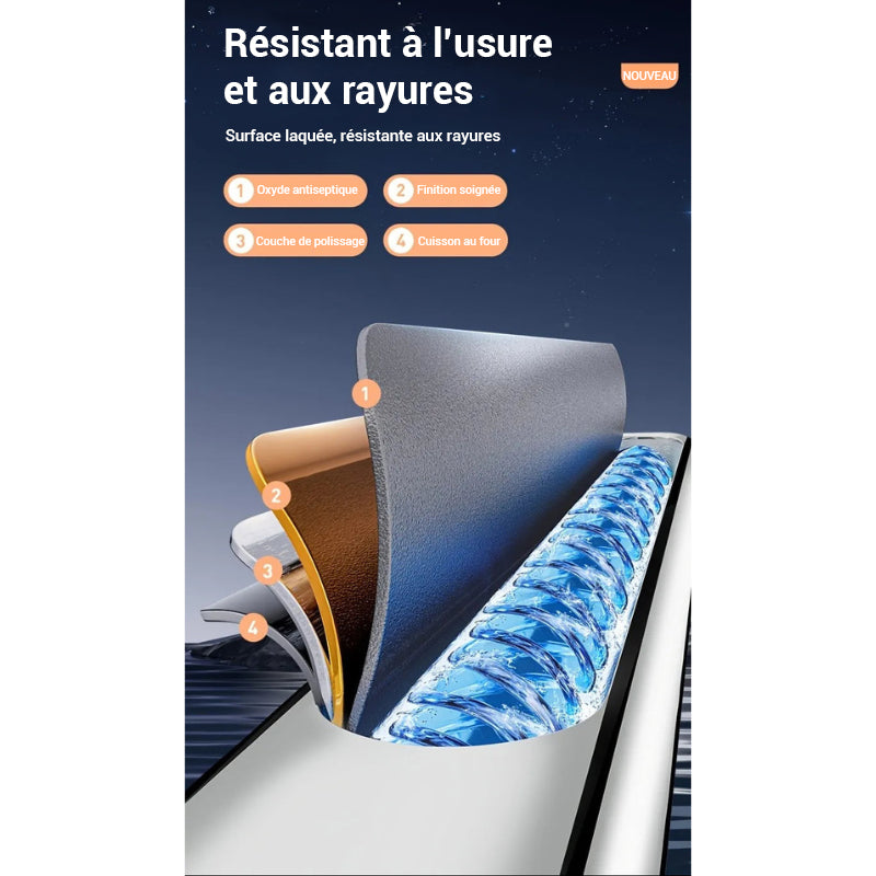 Un simple passage à la main sur les buses souples et un rinçage régulier permettent de détacher les dépôts. Un nettoyage ponctuel avec un chiffon doux complète l’entretien.
