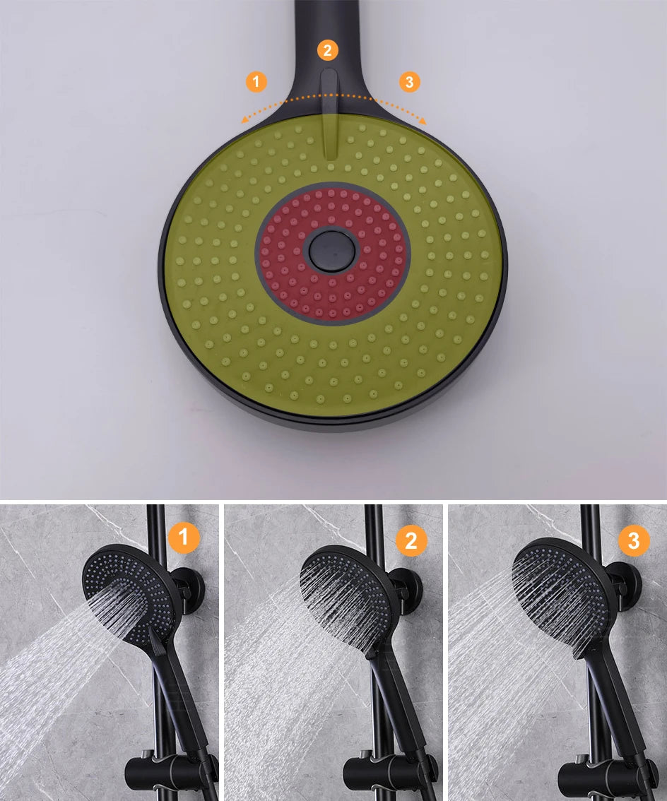 Pommeau de douche anti calcaire noir avec sélection de 3 fonctions