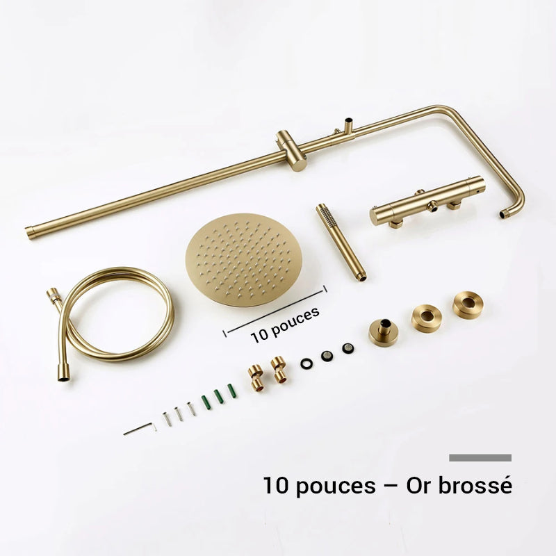 Un système thermostatique à double commande et barre réglable en laiton poli