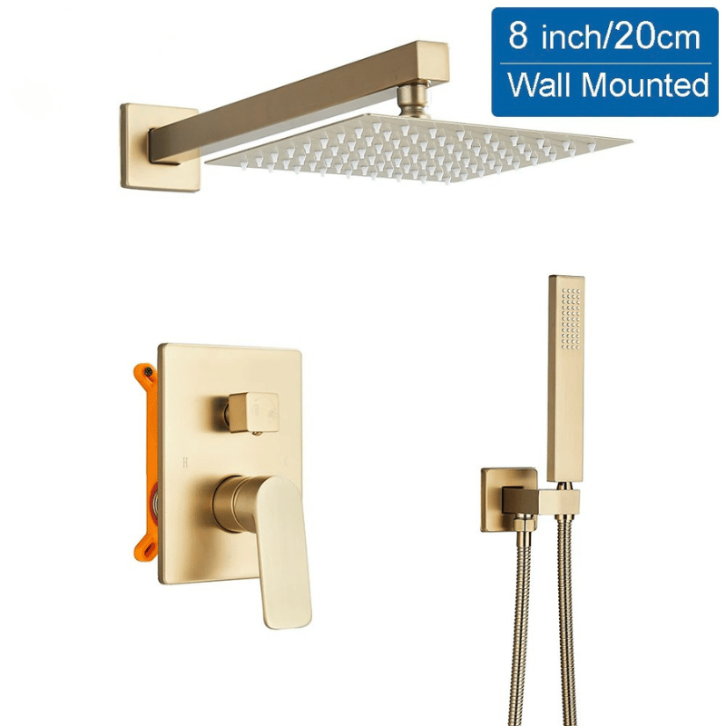 La colonne de douche encastrable tête carrée repose sur un mitigeur à commande unique, un panneau mural poli et un ensemble comprenant une tête de douche carrée murale disponible en 20 cm ou 25 cm. Le système inclut également une douchette rectangulaire assortie, montée sur un support mural fixe, avec un flexible adapté. Le mitigeur encastré assure la gestion de l’eau chaude et froide via un noyau de valve en céramique, tandis que la poignée unique permet la sélection du débit et de la sortie d’eau. La finition nickelée et polie donne un aspect uniforme à l’ensemble.