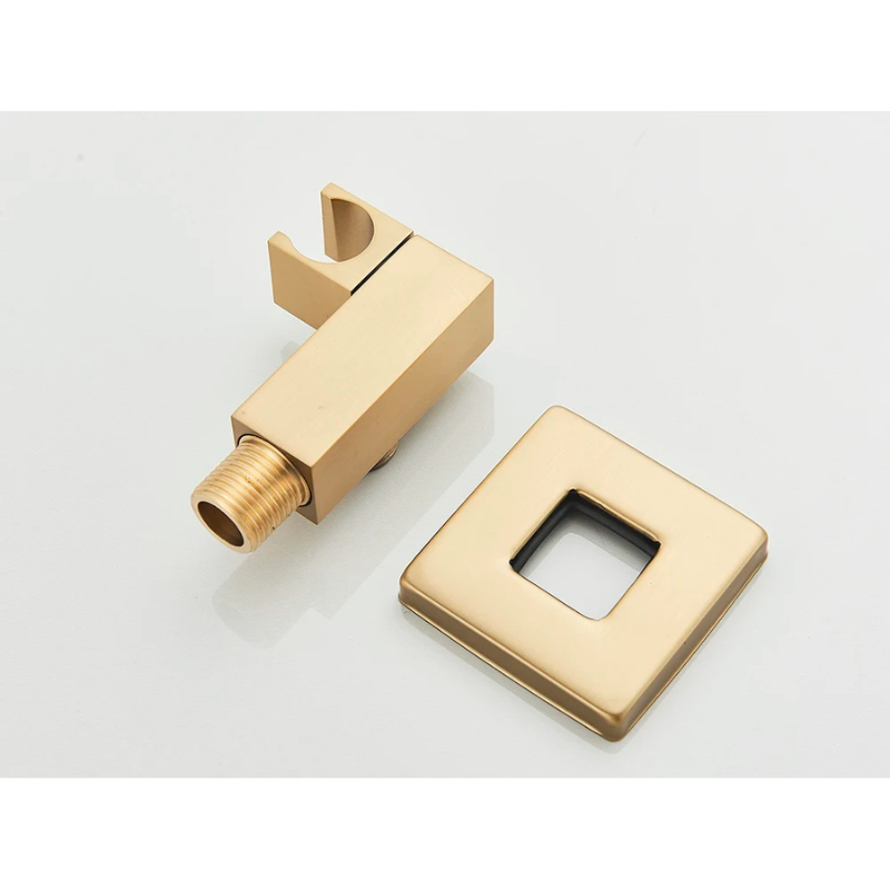 Le mitigeur encastré se compose d’un boîtier complet destiné à l’installation murale, associé à une commande unique permettant de regler le débit et la distribution entre la tête carrée murale et la douchette rectangulaire. La tête de douche carrée affiche un design plat avec buses en silicone, fixée sur un bras mural rectiligne assorti. La douchette rectangulaire, conçue dans la même finition, se fixe sur un support carré mural. Le noyau de valve en céramique assure la gestion du mélange chaud/froid, tandis que la finition nickel poli crée une homogénéité visuelle sur l’ensemble des composants.