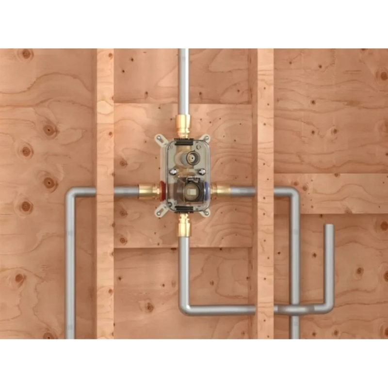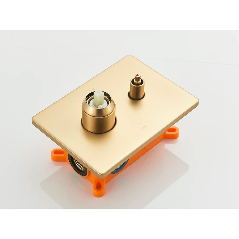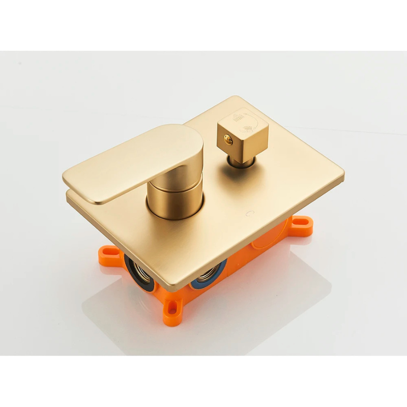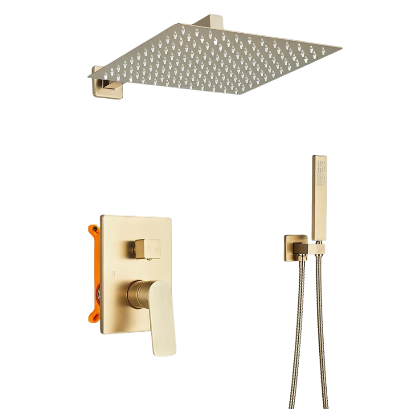 Une configuration encastrée structurée autour d’une tête carrée et d’un mitigeur à commande unique