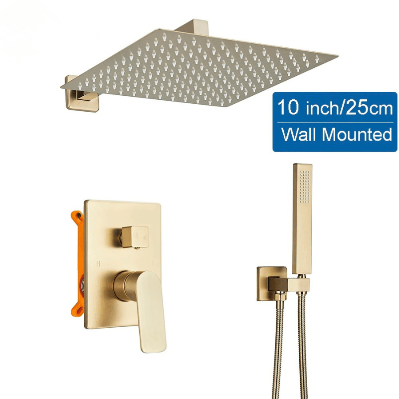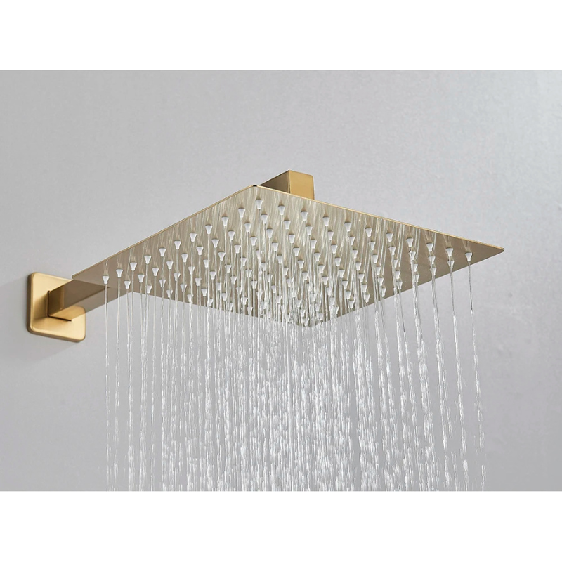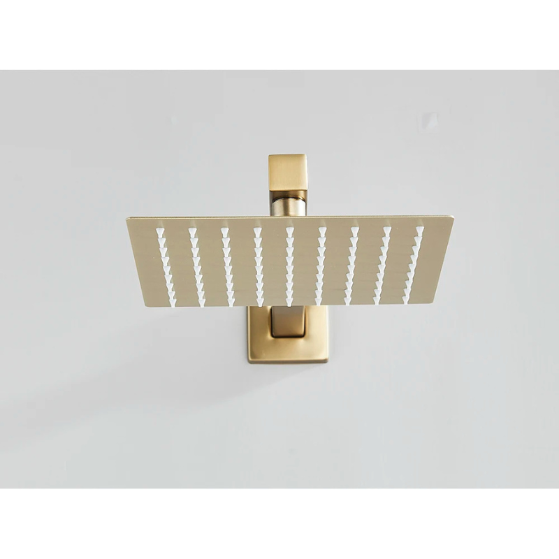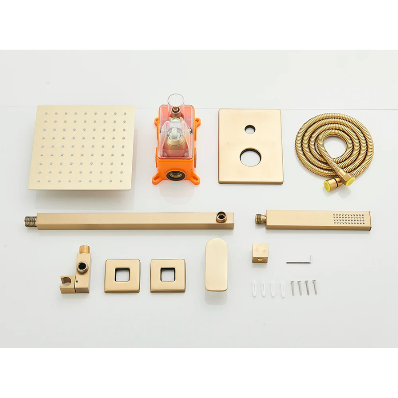 Une colonne de douche encastrable tête carrée avec mitigeur unique et éléments muraux assortis