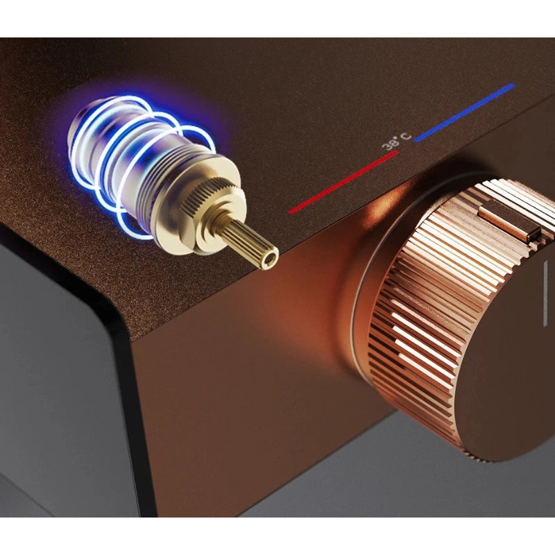 Une colonne de douche thermostatique régule automatiquement le mélange entre l’eau chaude et l’eau froide afin de maintenir une température stable pendant toute la durée de la douche. Le système ajuste en temps réel le débit de chaque arrivée, même en cas de variation de pression dans le réseau domestique.