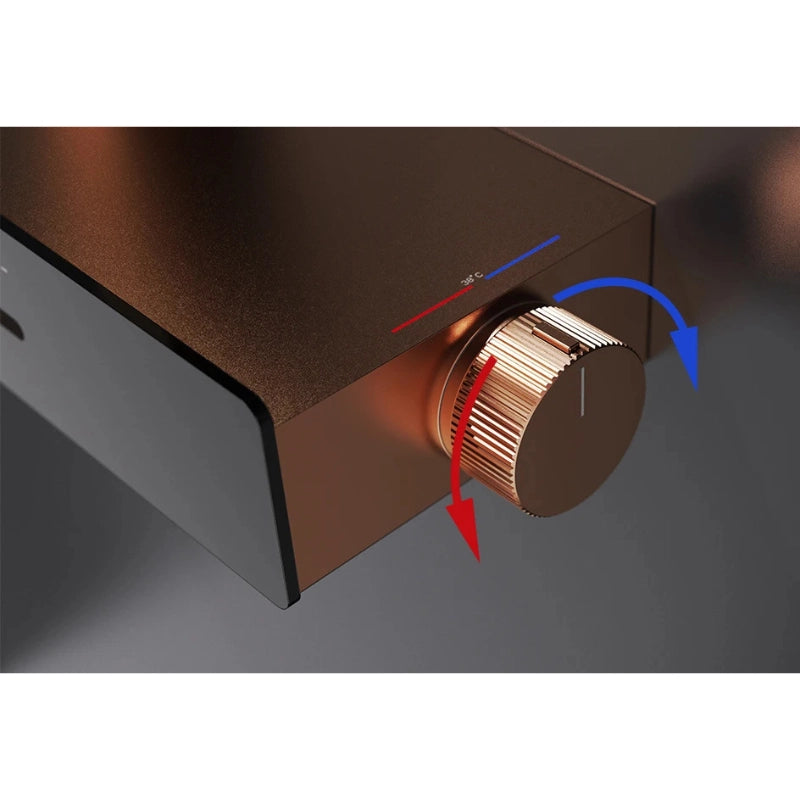 Le bloc de commande utilise trois sélecteurs indépendants permettant d’activer la sortie supérieure, la douchette ou le bec cascade intégré. La douche supérieure de grande dimension intègre des buses en gel de silice avec fonction autonettoyante, et peut être orientée selon un angle adapté. La douchette à main propose plusieurs modes d’écoulement accessibles par une commande dédiée.