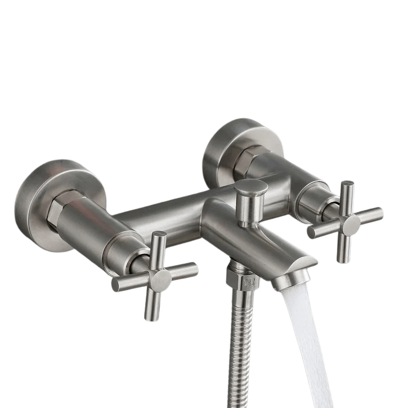 Mitigeur baignoire croix mural en acier inoxydable brossé