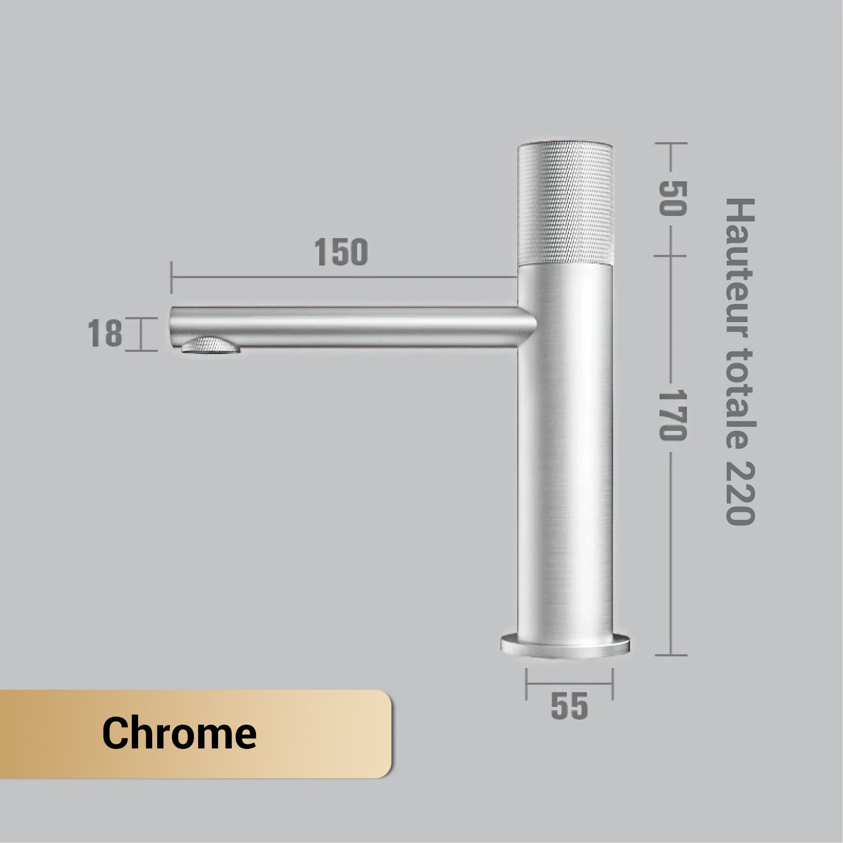 La hauteur souhaitée varie selon la profondeur de la vasque et l’espace disponible autour. Prendre en compte la distance entre la sortie d’eau et le fond du lavabo limite les projections.